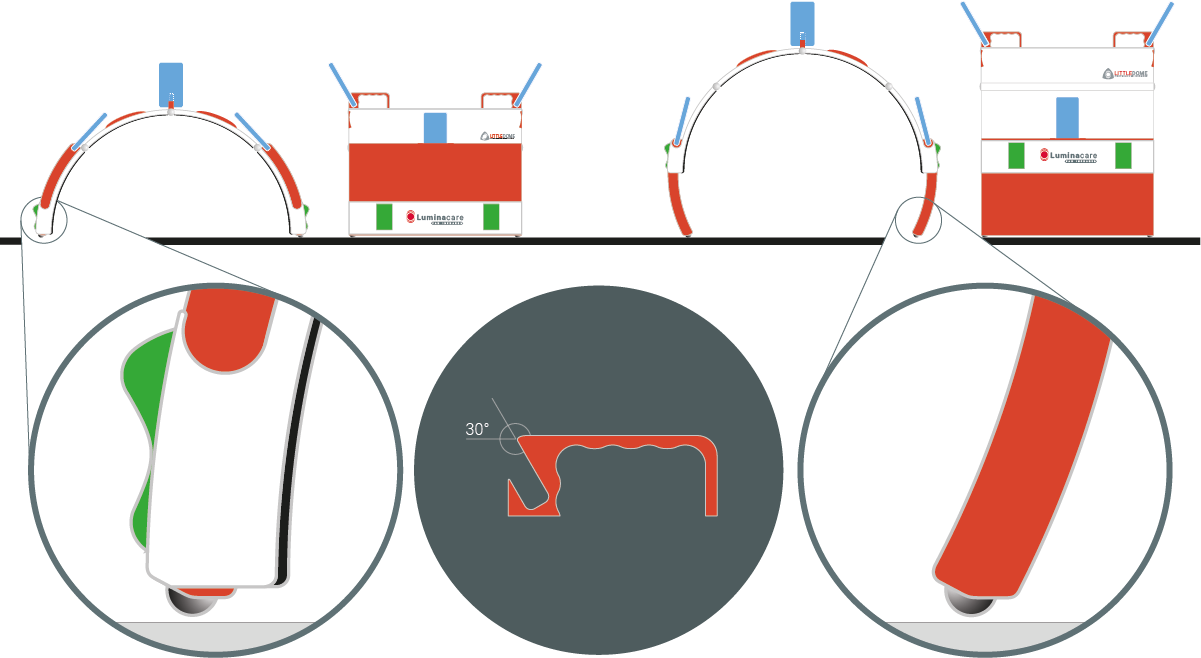 The application of far-infrared light involves the emission of some heat. In addition to the thermal sensation, some people, besides potentially having physical limitations, feel unwell in completely horizontal application chambers, so a version was created in which the person can remain seated.
