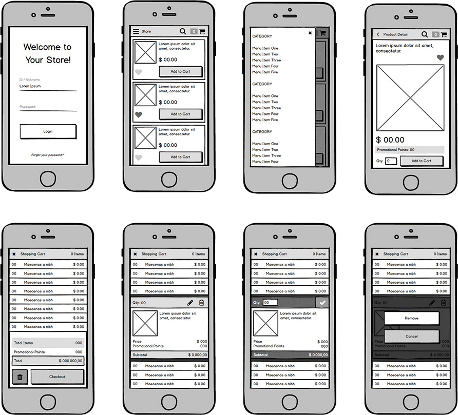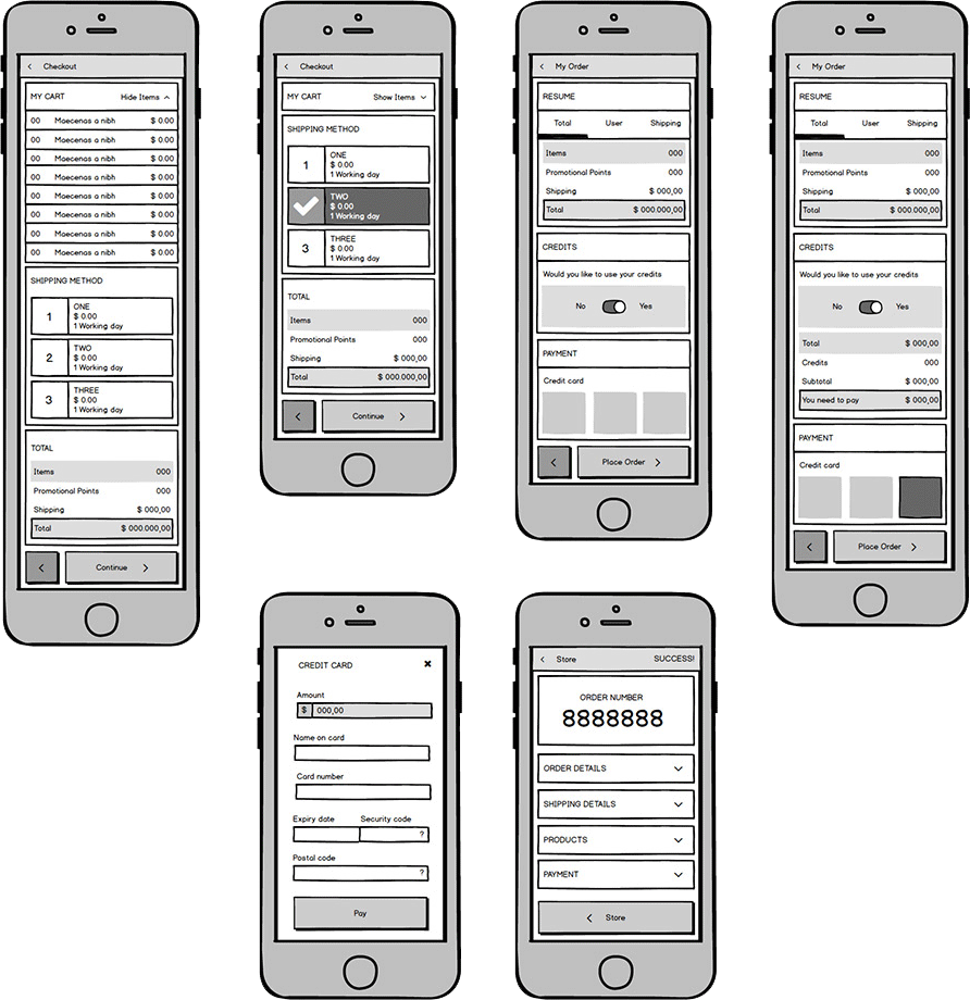 This store has restricted access and It´s so simple to use – the reason are the users, people that doesn´t have much experience with digital interfaces. I created these navigable wireframes with Balsamiq to discover and refine the best ways to make buying and payment processes more easy and intuitive.