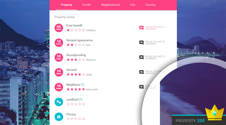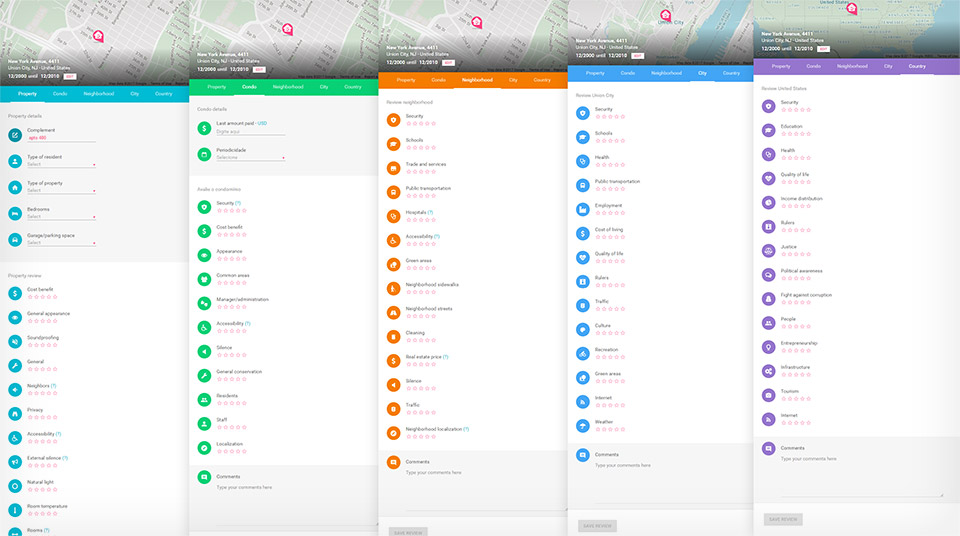 This side project was launched in 2014 and it was completely redesigned, with new features, in 2016. Fully responsive and with a new design based on material design, in addition to properties, it is also possible to review condos, neighborhoods, cities and countries from any part of the world.